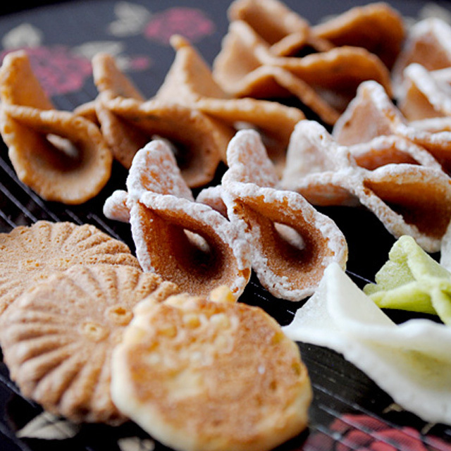 可愛らしいお煎餅を集めました。色んな形に色んな風味、見て楽しい、食べておいしい、ミニ詰め合わせです。